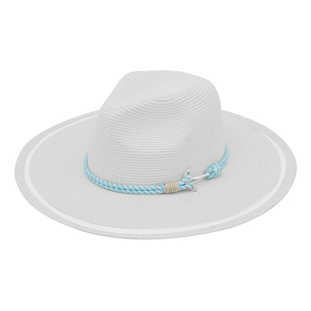 Anchor Detail Nautical Rope Band Sheer Brim Woven Sun Hat