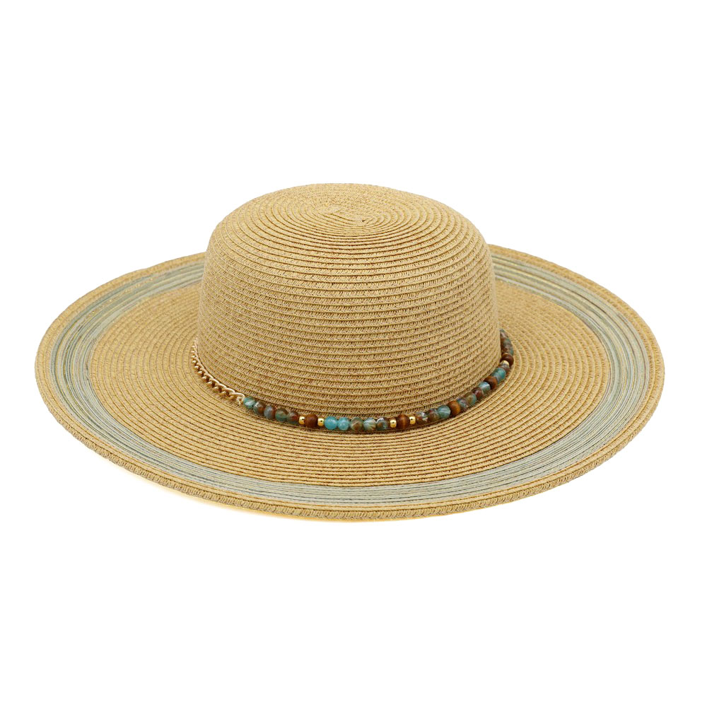 Beaded Band Shimmer Straw Wide Brim Summer Sun Hat