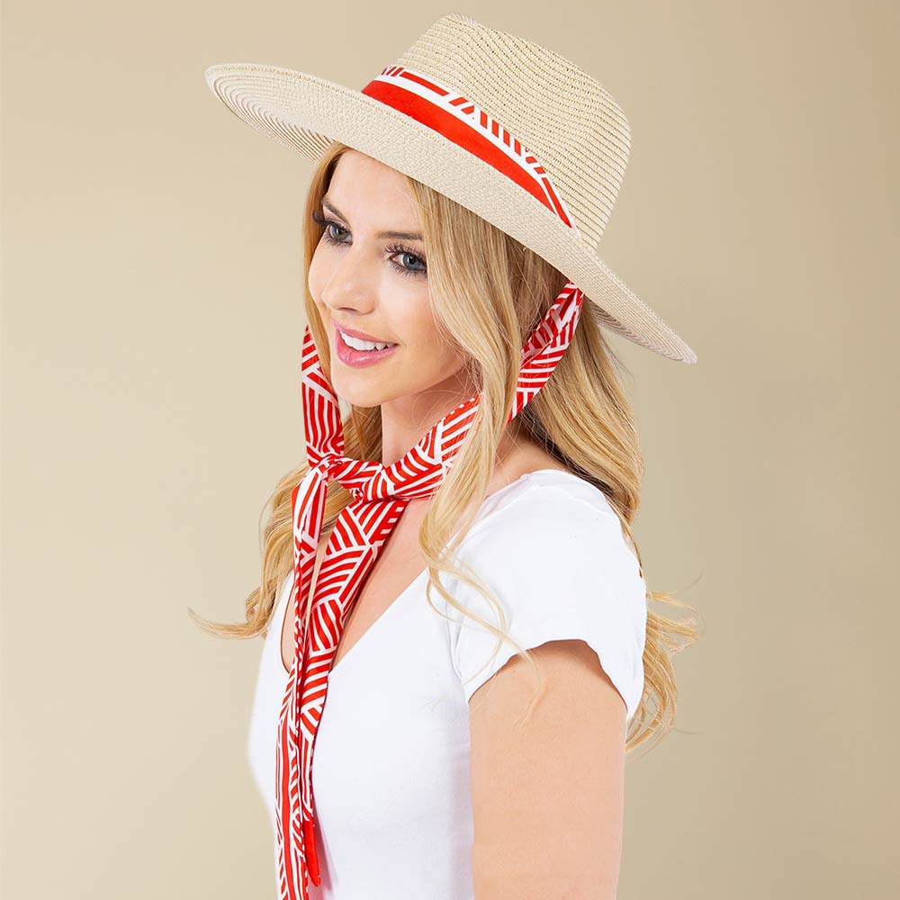 Details • Crown Circumference : 23" • Crown Height : 4.25" • Brim Height : 4.75" • Strap Size : 60" L / Detachable • Material : 100% Paper • Stylish fedora hat featuring a structured wide brim and an integrated geometric band scarf detail for a modern, fashion-forward look. Designed to elevate casual and dressy outfits alike, this versatile accessory offers effortless styling for travel, outdoor events, and everyday wear while adding a polished finishing touch.