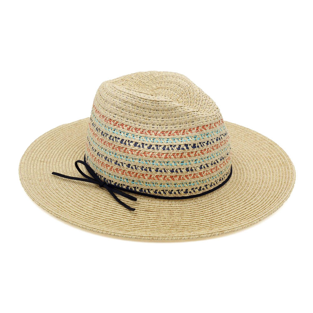 Details • Size : One Size • Material : 80% Paper, 20% Polyester • This wide brim woven sun hat features a structured crown with a decorative patterned band that adds visual interest without overpowering the design. Its balanced shape makes it ideal for everyday styling, travel, and resort wear. A versatile accessory that pairs easily with casual and seasonal outfits, offering strong retail appeal for boutiques seeking timeless yet eye-catching headwear.