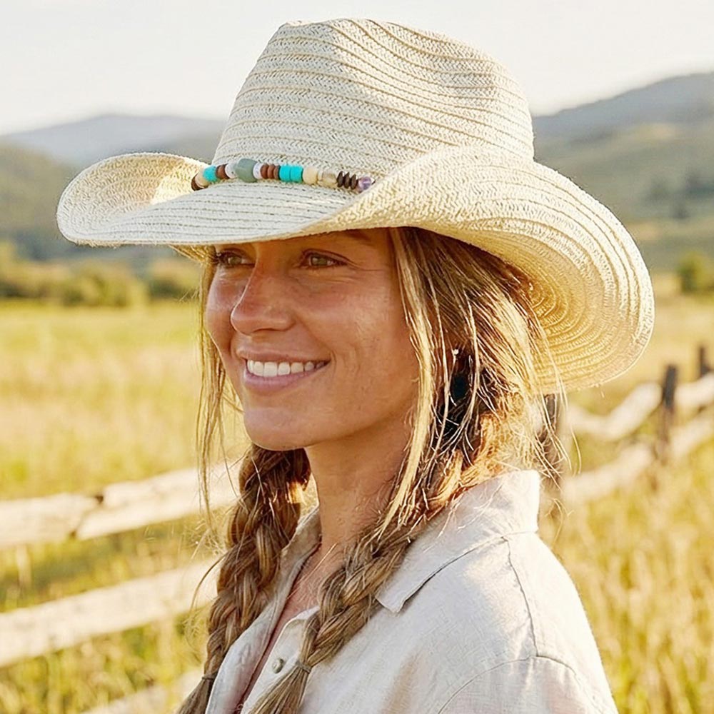 Stone Wood Beaded Band Summer Straw Cowboy Hat Stone Wood Beaded Band Summer Straw Cowboy Hat Stone Wood Beaded Band Summer Straw Cowboy Hat