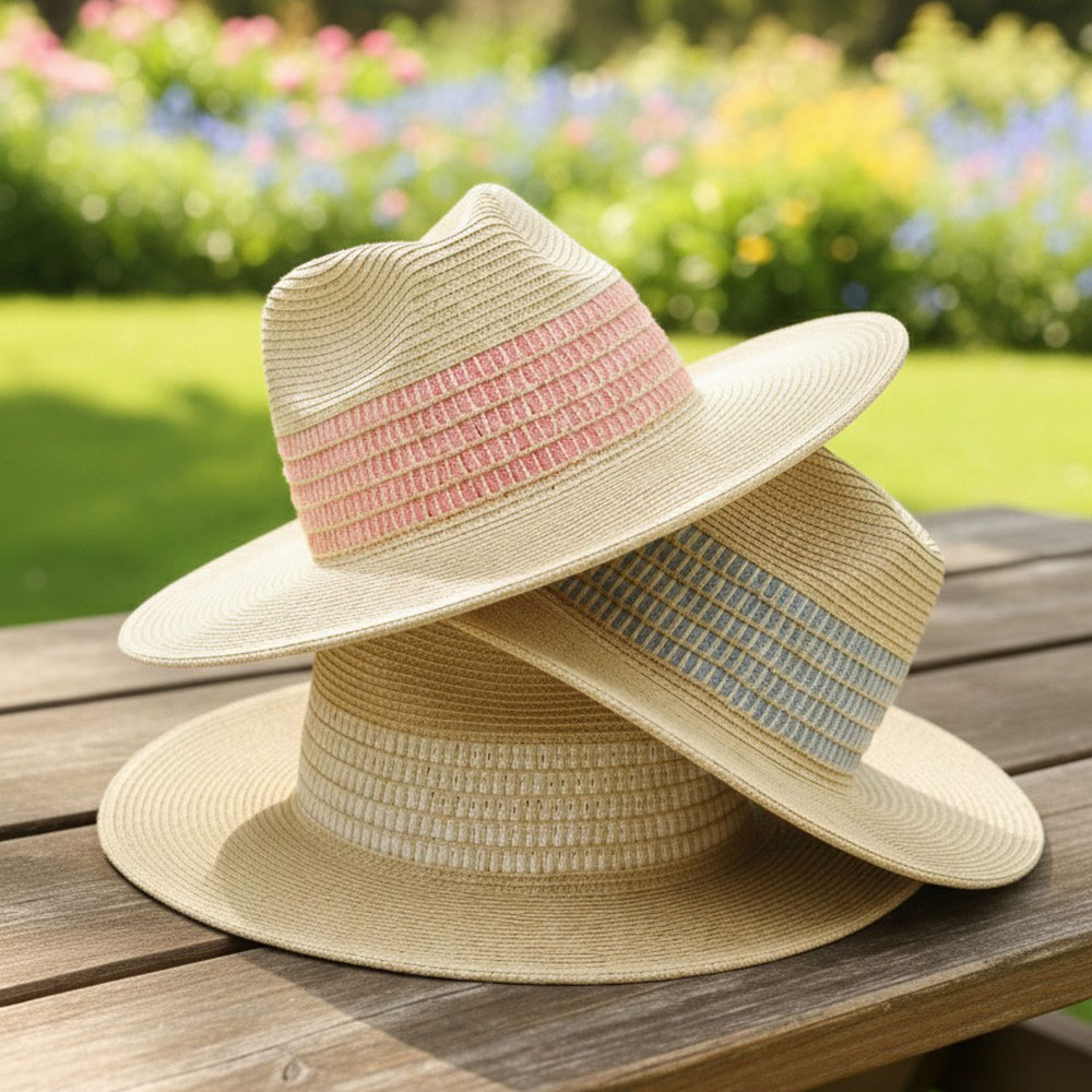 Details • Size : One Size • Material : 80% Paper, 20% Polyester • This classic wide brim woven sun hat features a structured silhouette designed for everyday wear and vacation styling. Its balanced proportions create a polished look that pairs effortlessly with casual outfits, resort ensembles, and seasonal collections. An easy-to-style accessory that offers strong visual appeal and merchandising flexibility for boutiques seeking timeless headwear with broad customer appeal.