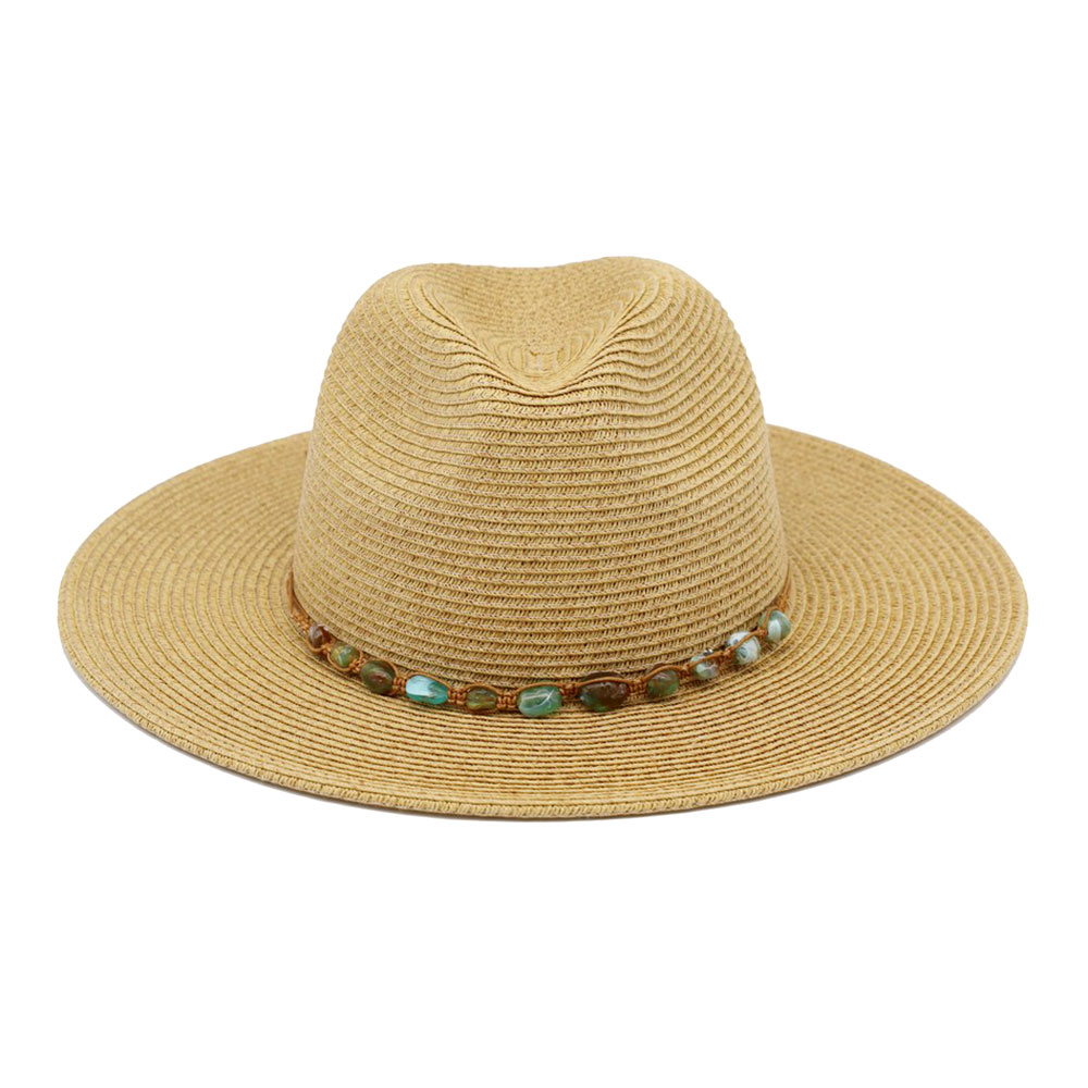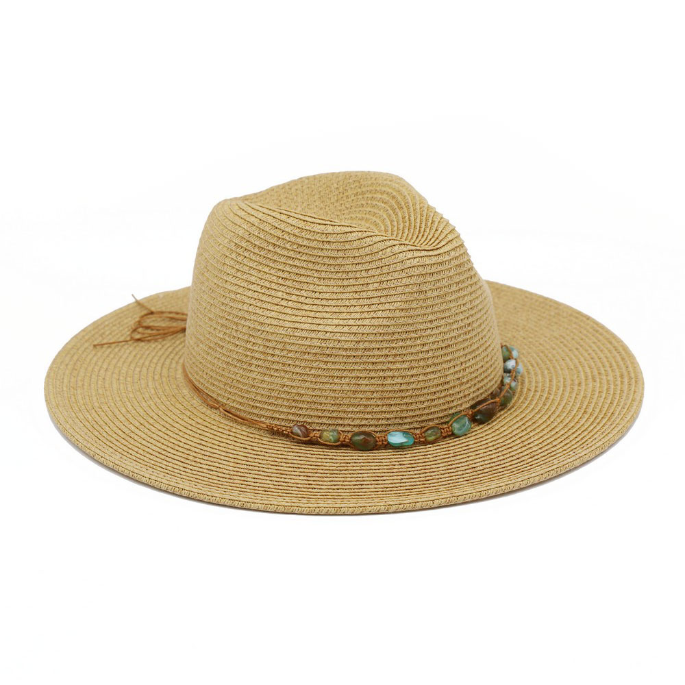 Turquoise Stone Band Straw Summer Fedora Hat