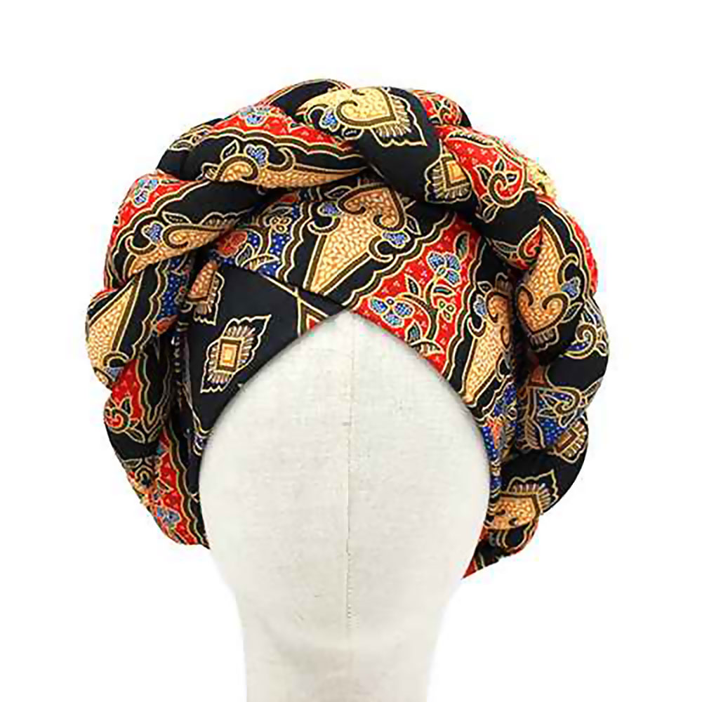 • This striking headwrap features a sculpted, voluminous design with an intricate all-over pattern that creates a standout look for any wardrobe. Its pre-formed structure offers effortless styling, making it ideal for expressive fashion statements, cultural events, or everyday elegance.