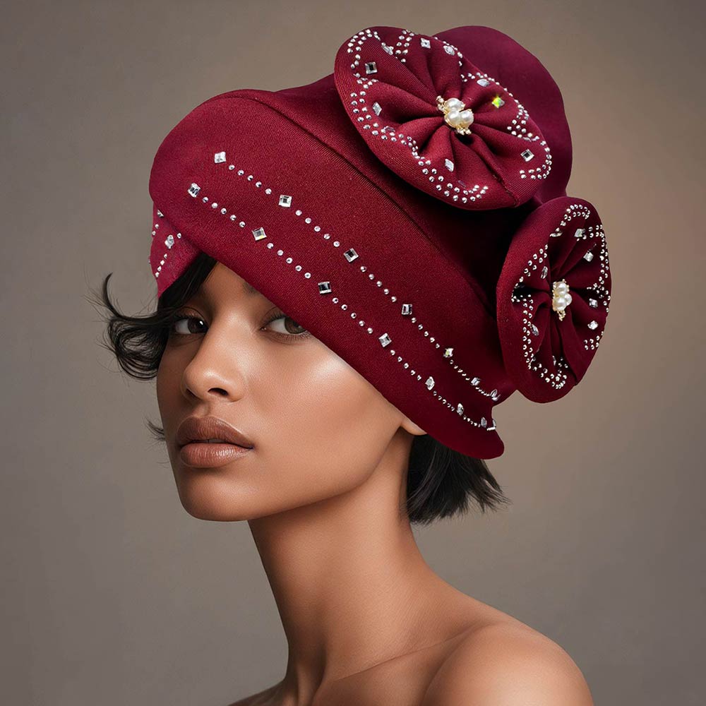 • Elegant turban-style hat featuring sculpted floral accents and refined embellishment details for a polished statement look. Designed to elevate formal outfits, event styling, and boutique collections, this fashion-forward headwear adds structure, dimension, and standout appeal to dressy and occasion-ready ensembles.