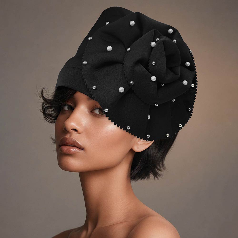 Details • Size : One Size • Material : 100% Polyester • Embellished statement turban headwrap designed to elevate formal and fashion-forward looks. This sculpted headwrap features decorative accents for a polished, high-impact finish, ideal for special events, evening wear, photoshoots, and boutique accessories collections. Lightweight, comfortable, and eye-catching, it offers a refined alternative to traditional headwear while adding dramatic style appeal.