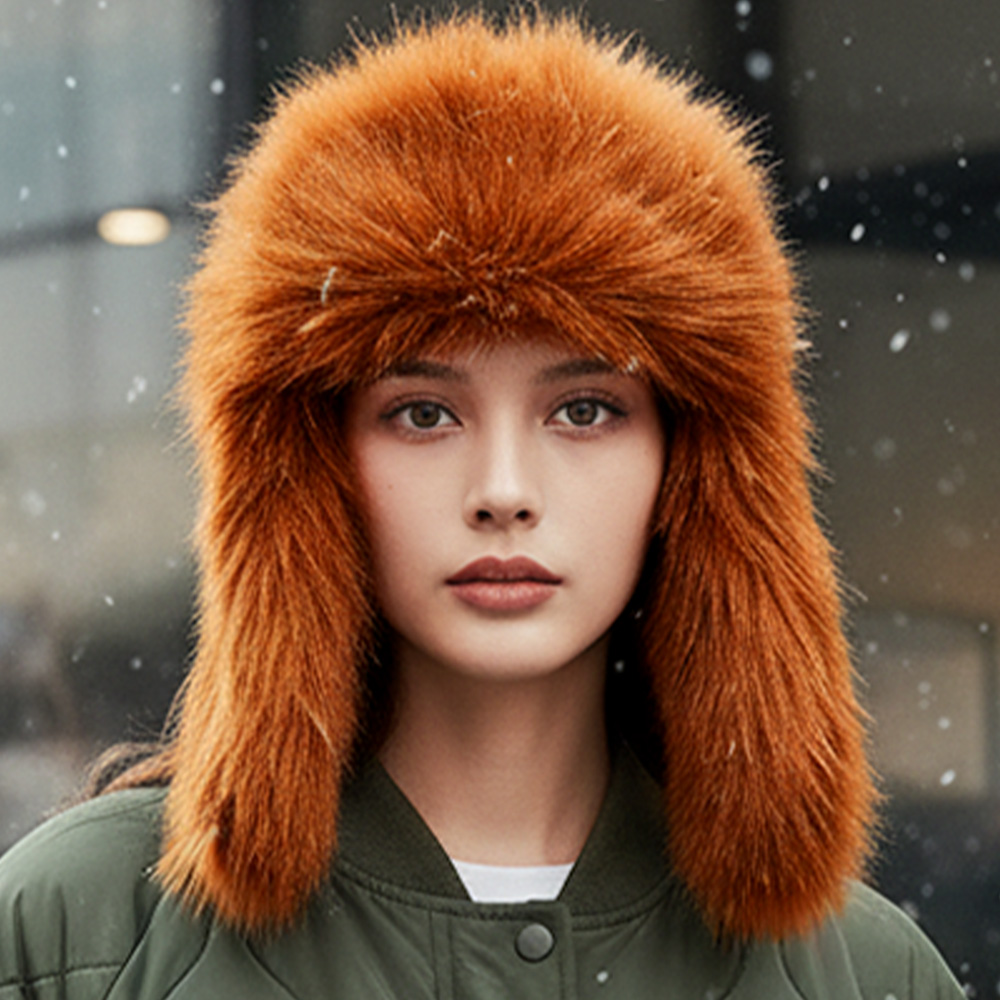 • Warm and stylish winter trapper hat featuring fluffy ear flaps for extra comfort and coverage in cold weather. Designed for a cozy fit, this hat adds a bold touch to seasonal outfits while keeping you snug during outdoor activities and chilly days.