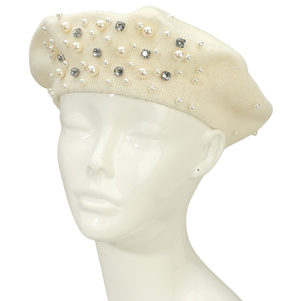 Pearl Rhinestone Embellished Winter Beret Hat