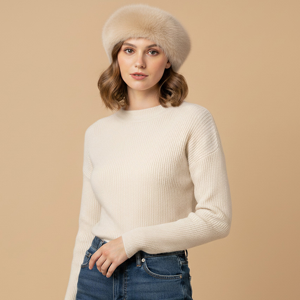 Plush Faux Fur Round Winter Beret Hat