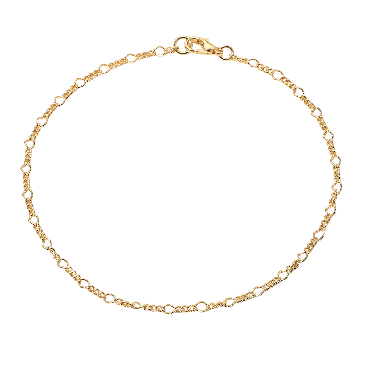 Details • Size : 0.1" H (2mm), 9" L • Lobster Clasp Closure • Delicate anklet featuring a unique twisted circle link pattern that adds subtle texture and shine. Perfect for everyday elegance, this 18K gold-filled design brings a refined, modern charm—ideal for layering or wearing alone for a simple, polished look. • Gold Filled • Lead and Nickel Compliant • Made In Brazil