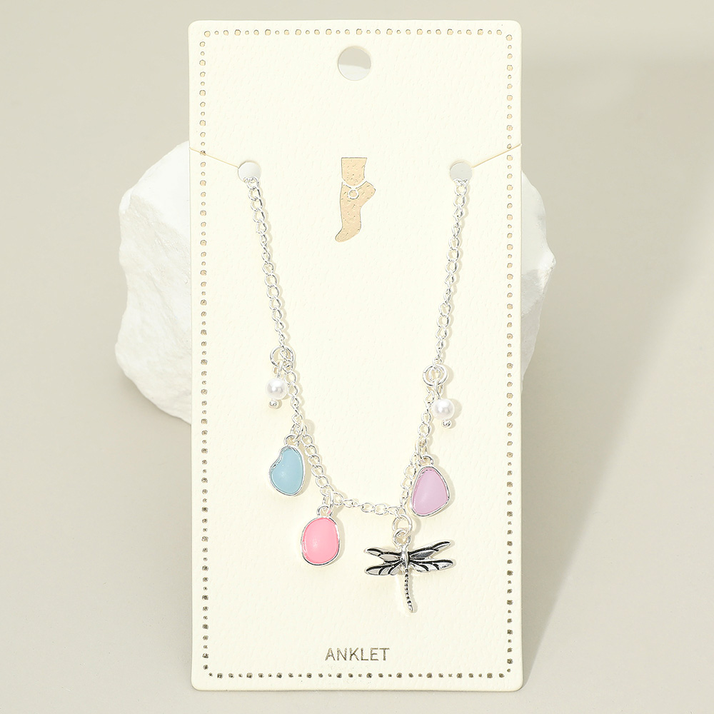 • Dragonfly charm anklet featuring delicate dangling accents and a graceful nature-inspired design that symbolizes lightness and transformation. Designed to add subtle movement and charm to ankle styling for everyday wear or vacations. Ideal for gifting or boutique collections focused on feminine, seasonal fashion jewelry.