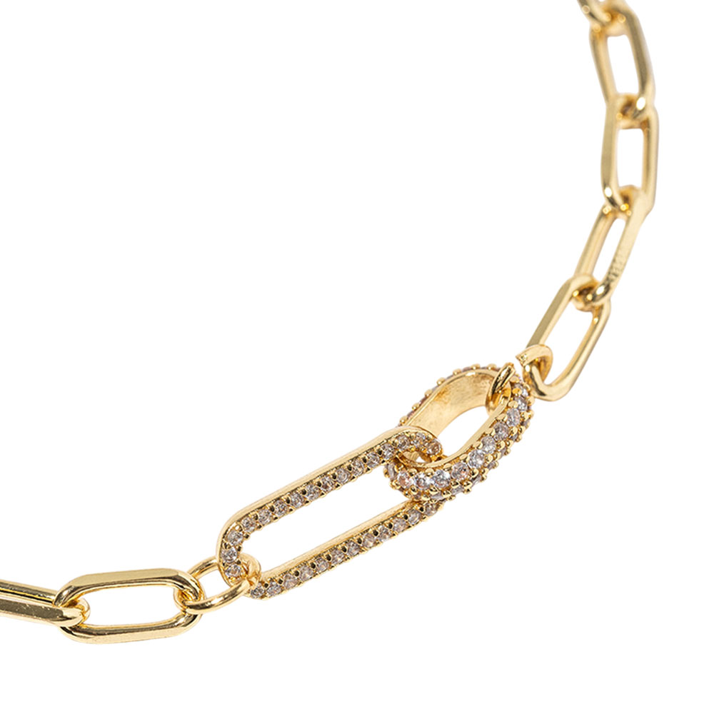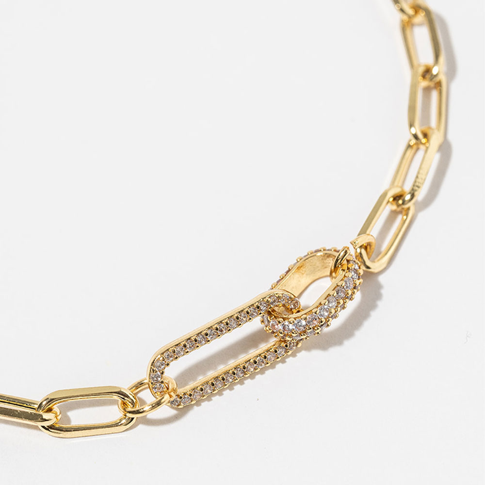 Gold Dipped CZ Stone Paved Link Accent Paperclip Chain Anklet
