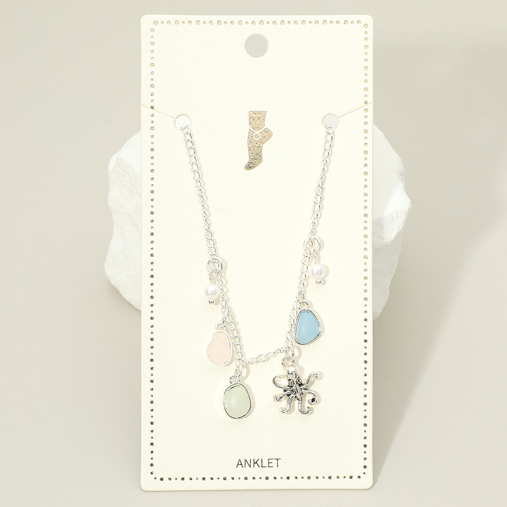 • Octopus charm anklet featuring playful ocean-inspired details with delicate dangling accents that add movement and personality. Designed for everyday wear or vacation styling with a fun coastal touch. Ideal for gifting or boutique collections focused on beach, marine, and nature-themed fashion jewelry.