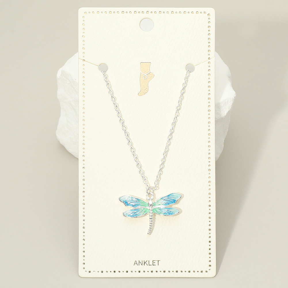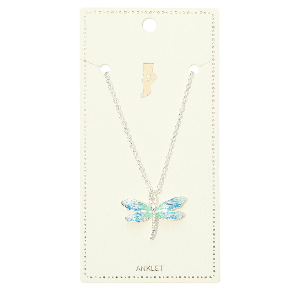 Ombre Enamel Dragonfly Charm Anklet