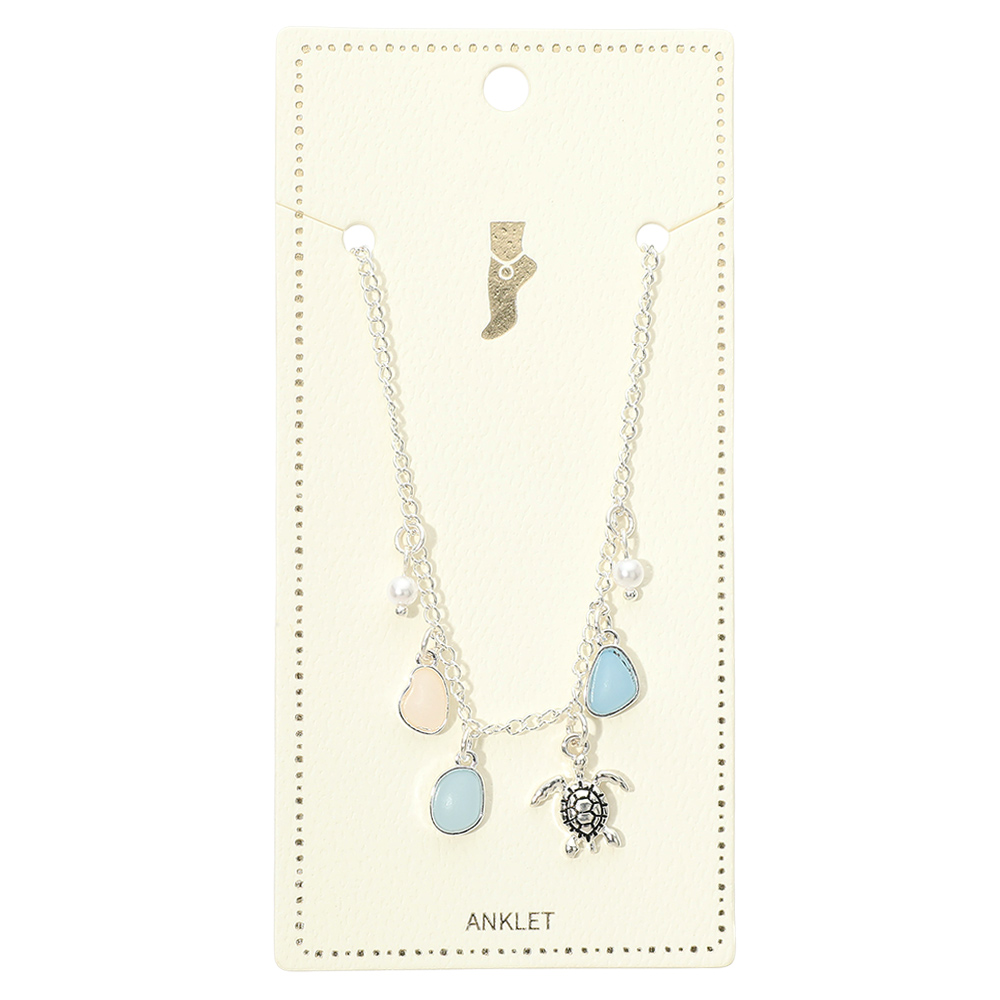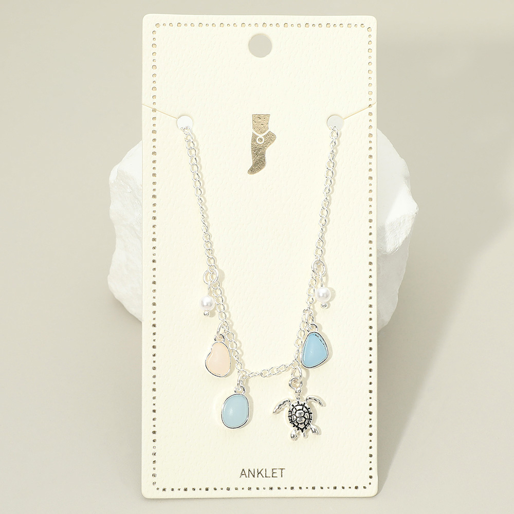 Sea Turtle Sea Glass Pearl Charm Station Anklet Sea Turtle Sea Glass Pearl Charm Station Anklet Sea Turtle Sea Glass Pearl Charm Station Anklet