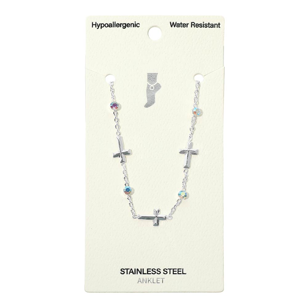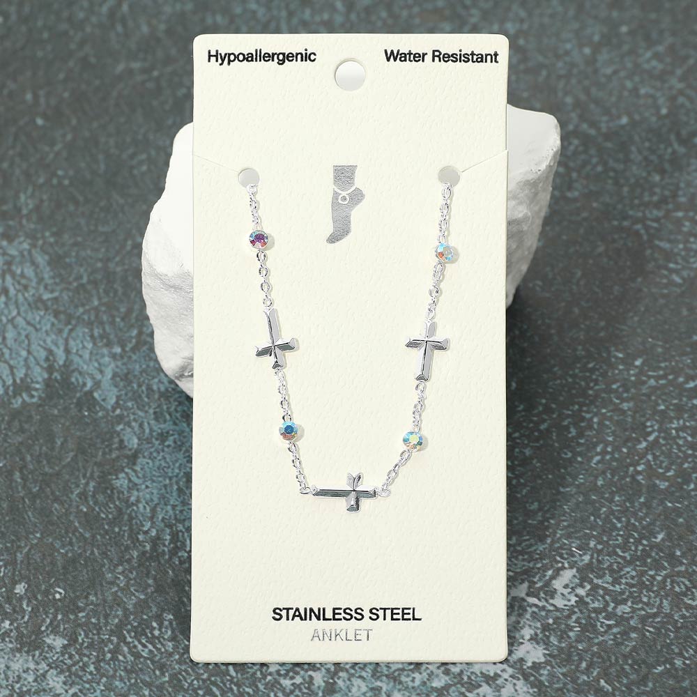 Stainless Steel Cross Charm Stone Station Anklet Stainless Steel Cross Charm Stone Station Anklet Stainless Steel Cross Charm Stone Station Anklet