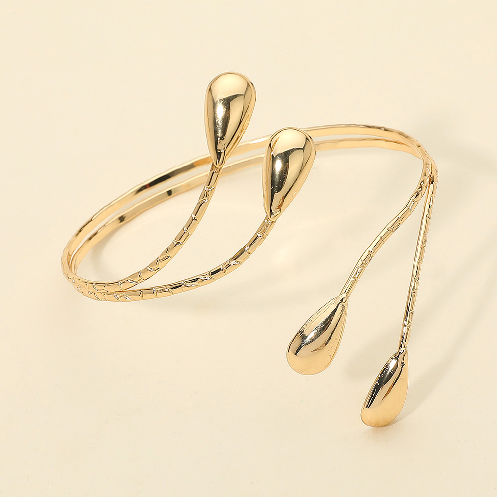 Details • Size : 3.75" H • Adjustable / Cuff • Elevate your style with this abstract teardrop cuff bracelet, featuring a sleek open design with artistic droplet accents. Adjustable for a comfortable fit, it’s a bold yet elegant accessory that adds a modern touch to both casual and dressy outfits. • Lead and Nickel Compliant