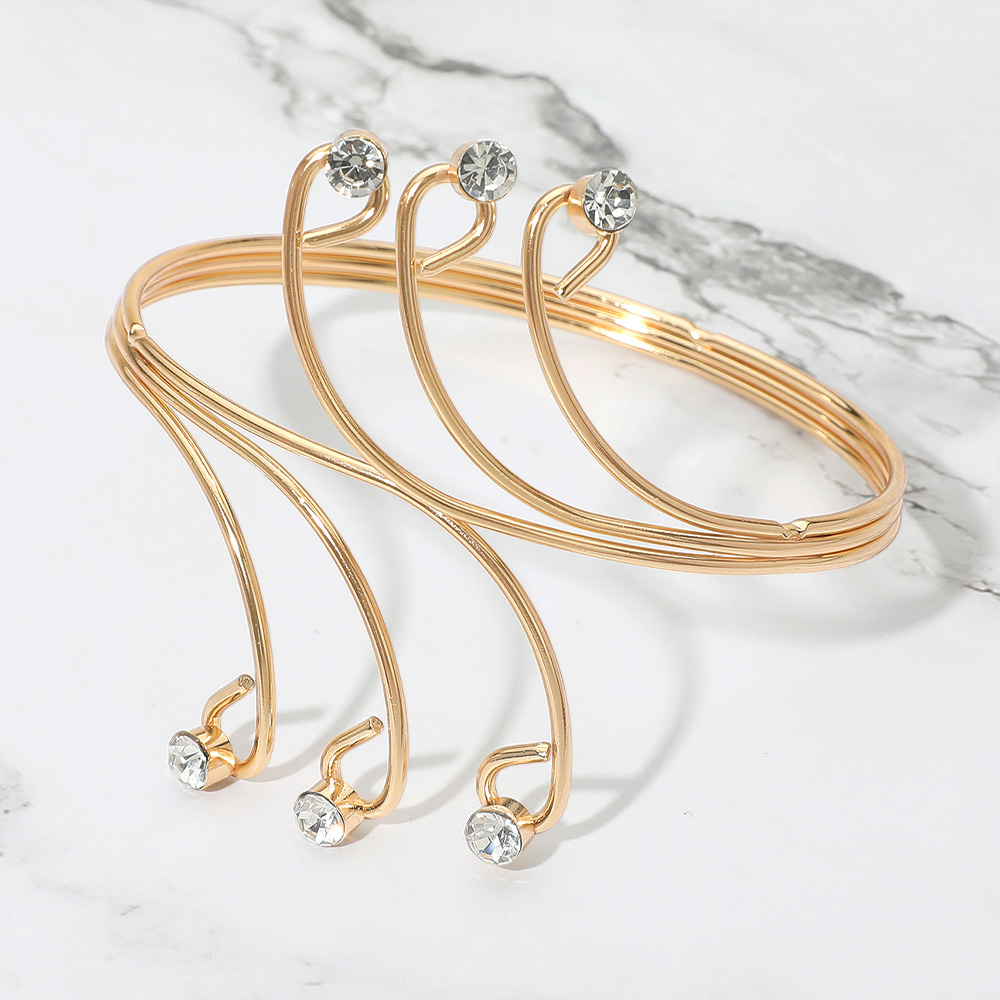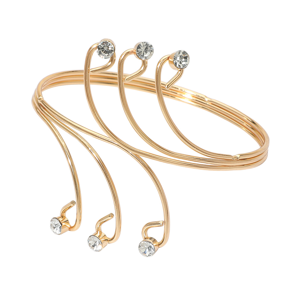 Details • Size : 3.25" H, 3.3" D • Adjustable / Cuff • Elegant spiral arm cuff bracelet featuring an open wrap design accented with sparkling crystals. Adjustable for a comfortable fit, this statement accessory adds modern sophistication and shine to any look. Perfect for evening wear, festivals, or elevating casual outfits with a touch of glamour. • Lead and Nickel Compliant