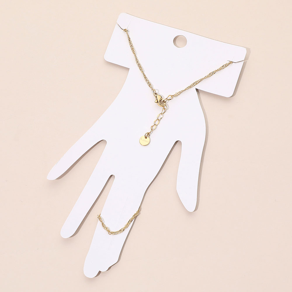 • Minimalist rope-style hand chain linking wrist and finger in a graceful, streamlined silhouette for effortless sophistication. Perfect for subtle layering or elegant solo wear, this chic piece enhances everyday outfits and transitions seamlessly into refined evening styling with understated shine.