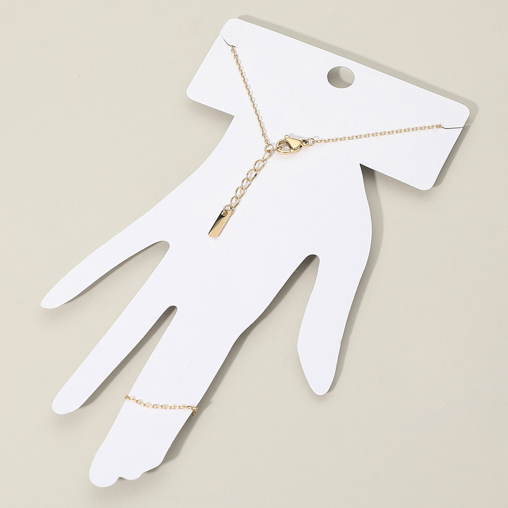 Details • Size : 3.5" H, 6.5" + 1" L • Ring Size : Free • Delicate hand chain bracelet featuring a slim linked design with subtle pearl bead accents and a graceful ring-to-wrist connection. Adds a refined touch to casual or dressy looks, offering lightweight comfort and stylish detail suitable for everyday wear or special occasions. • Stainless Steel