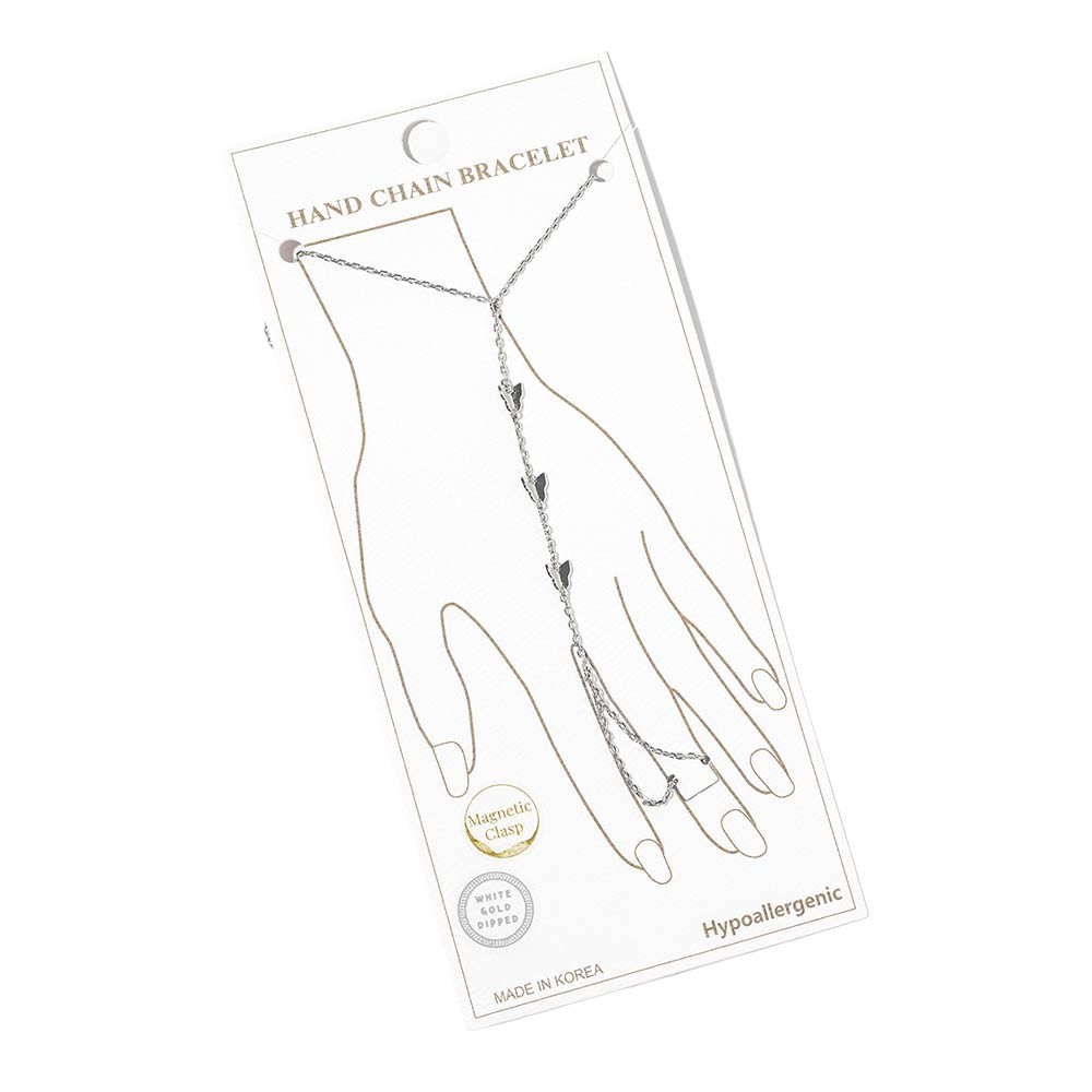 • This stylish hand chain bracelet features a delicate wrist-to-finger design accented with butterfly details for a graceful, eye-catching look. Designed with a secure magnetic clasp for easy wear, it offers effortless styling for everyday outfits, special occasions, and curated boutique jewelry collections. Perfect for customers seeking unique, modern hand jewelry with elegant movement.