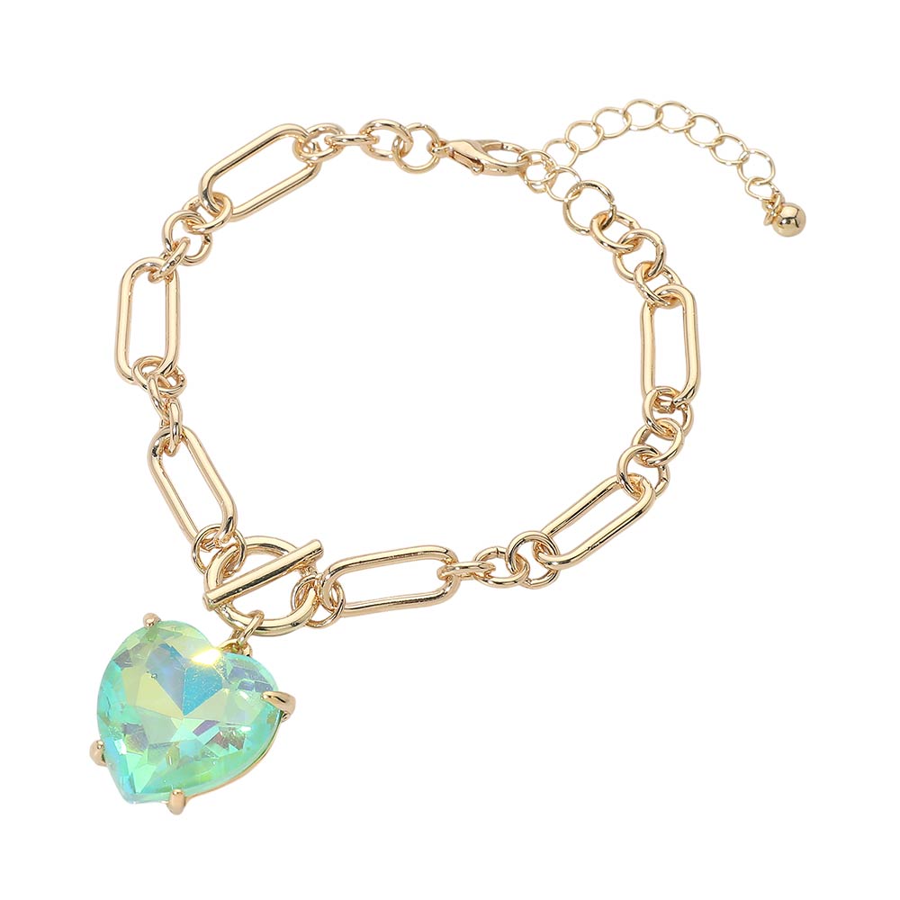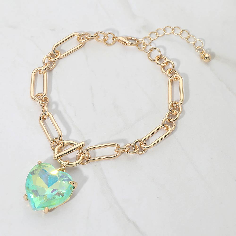 Chunky Heart Stone Cluster Toggle Charm Bracelet