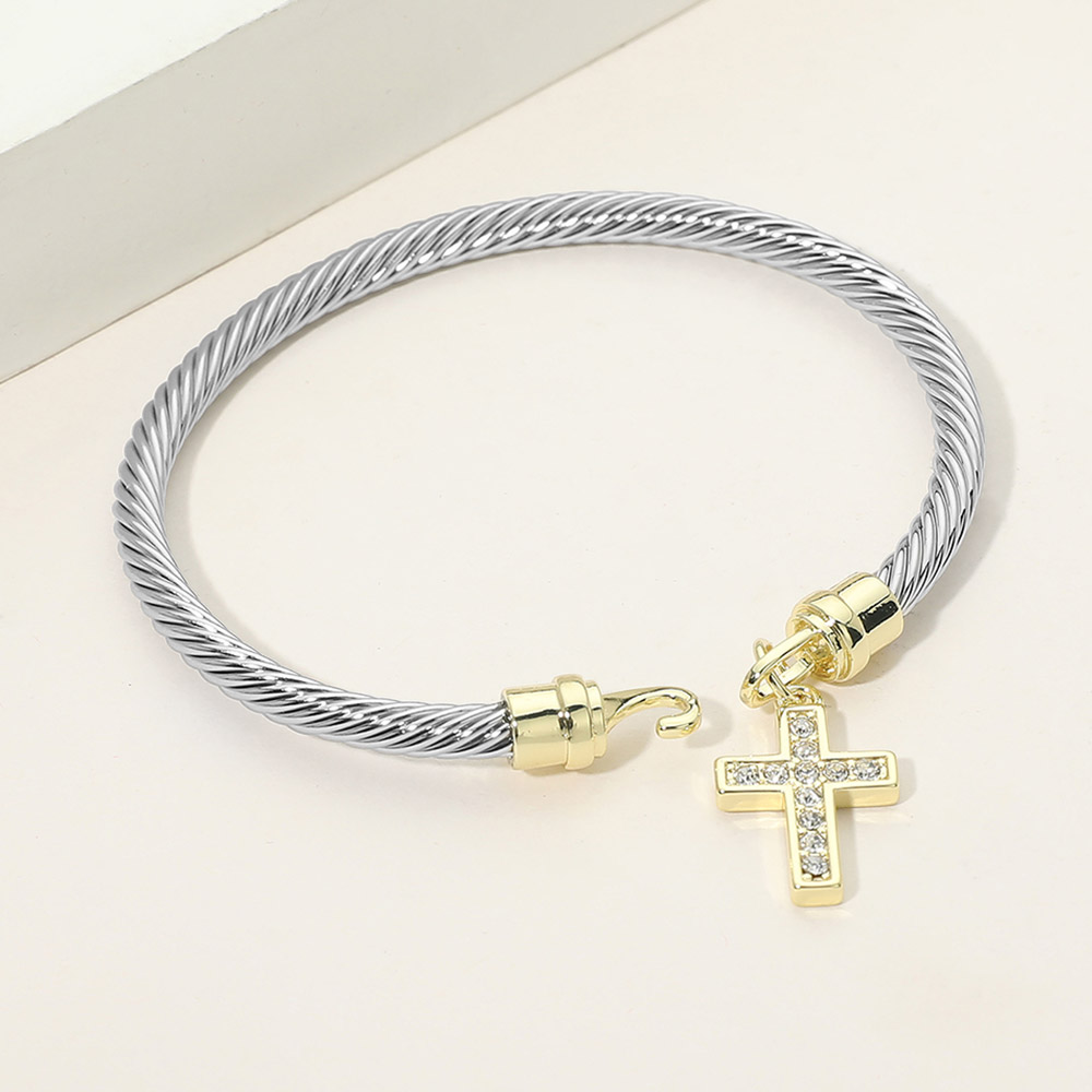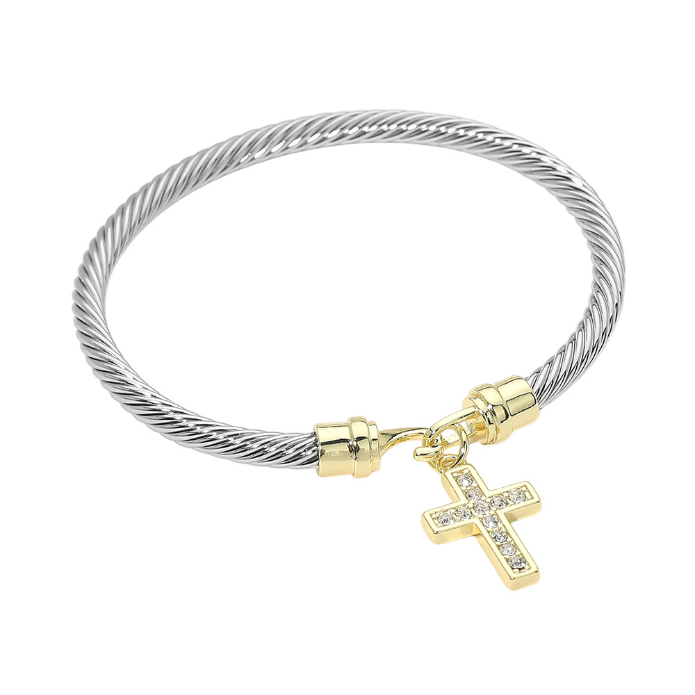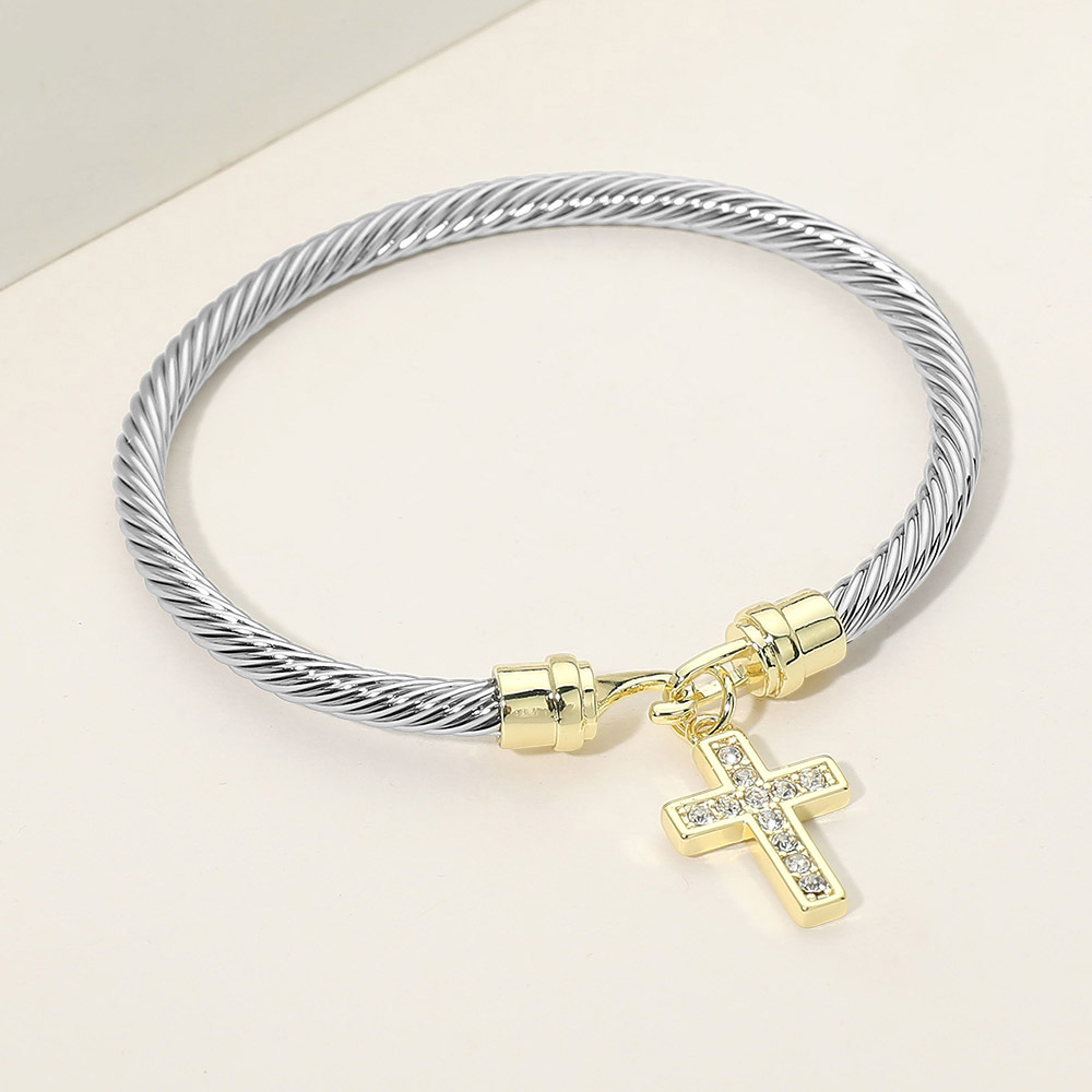 CZ Pave Cross Charm Cable Bangle Bracelet CZ Pave Cross Charm Cable Bangle Bracelet CZ Pave Cross Charm Cable Bangle Bracelet