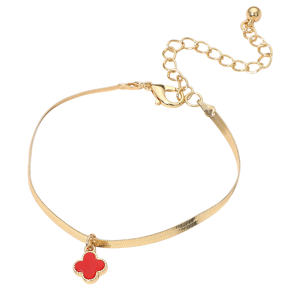 Gold Dipped Quatrefoil Charm Herringbone Chain Bracelet