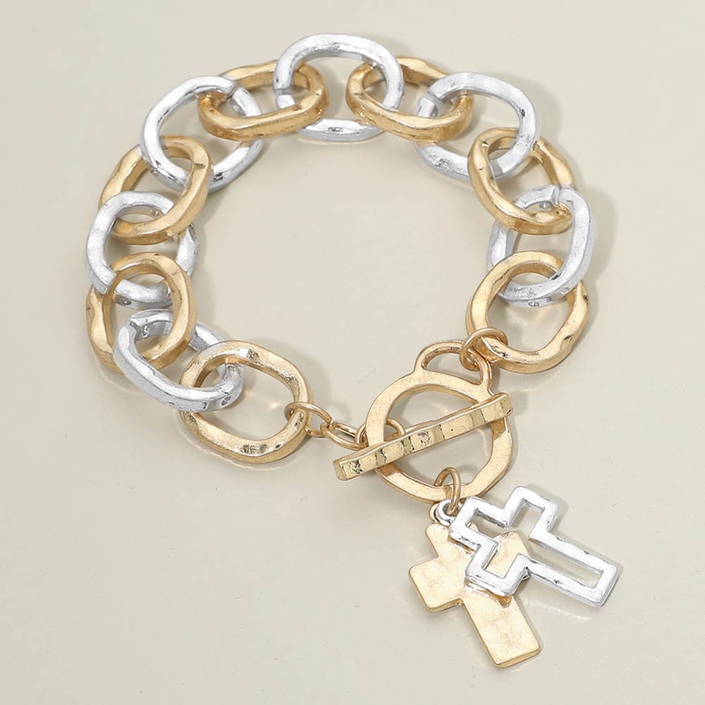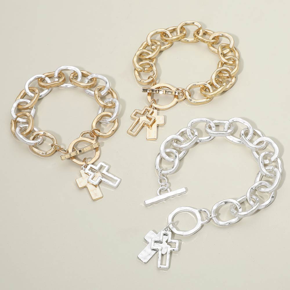 Hammered Layered Cross Charm Chunky Chain Toggle Bracelet Hammered Layered Cross Charm Chunky Chain Toggle Bracelet Hammered Layered Cross Charm Chunky Chain Toggle Bracelet