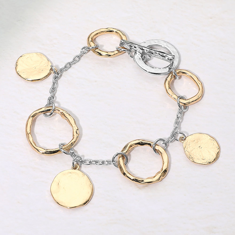 Hammered Metal Disc Charm Ring Link Bracelet Hammered Metal Disc Charm Ring Link Bracelet Hammered Metal Disc Charm Ring Link Bracelet