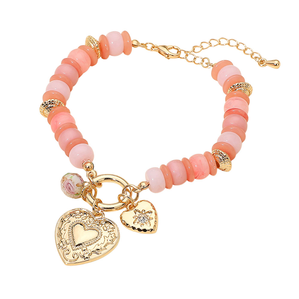 Heart Floral Ball Charm Accent Resin Disc Beaded Bracelet