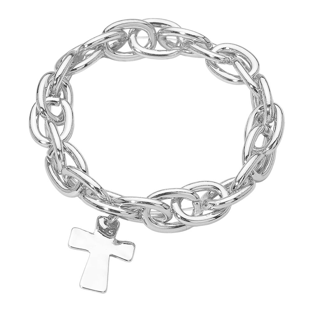 Metal Cross Charm Chunky Chain Link Stretch Bracelet Metal Cross Charm Chunky Chain Link Stretch Bracelet Metal Cross Charm Chunky Chain Link Stretch Bracelet