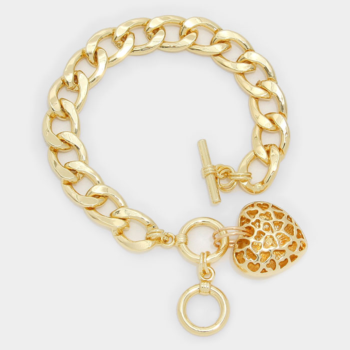 Metal Heart Charm Toggle Bracelet