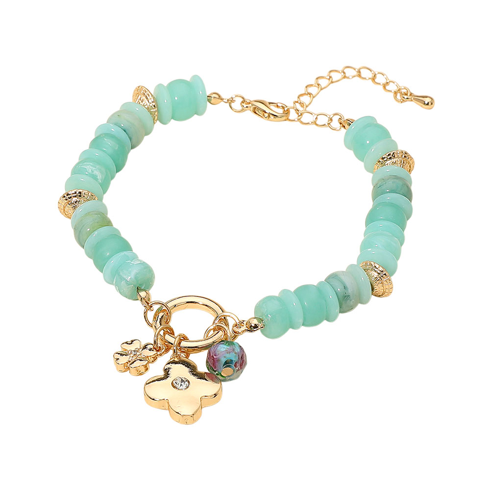 Details • Size : 0.3" H, 7" + 2" L • Charm Size : 0.6" X 0.6" • Lobster Clasp Closure • Elevate your wrist style with this beaded charm bracelet featuring a decorative quatrefoil floral accent cluster and adjustable fit. Ideal for everyday wear or gifting, it layers effortlessly with other favorites and adds a refined, modern touch to both casual and polished looks. • Lead and Nickel Compliant