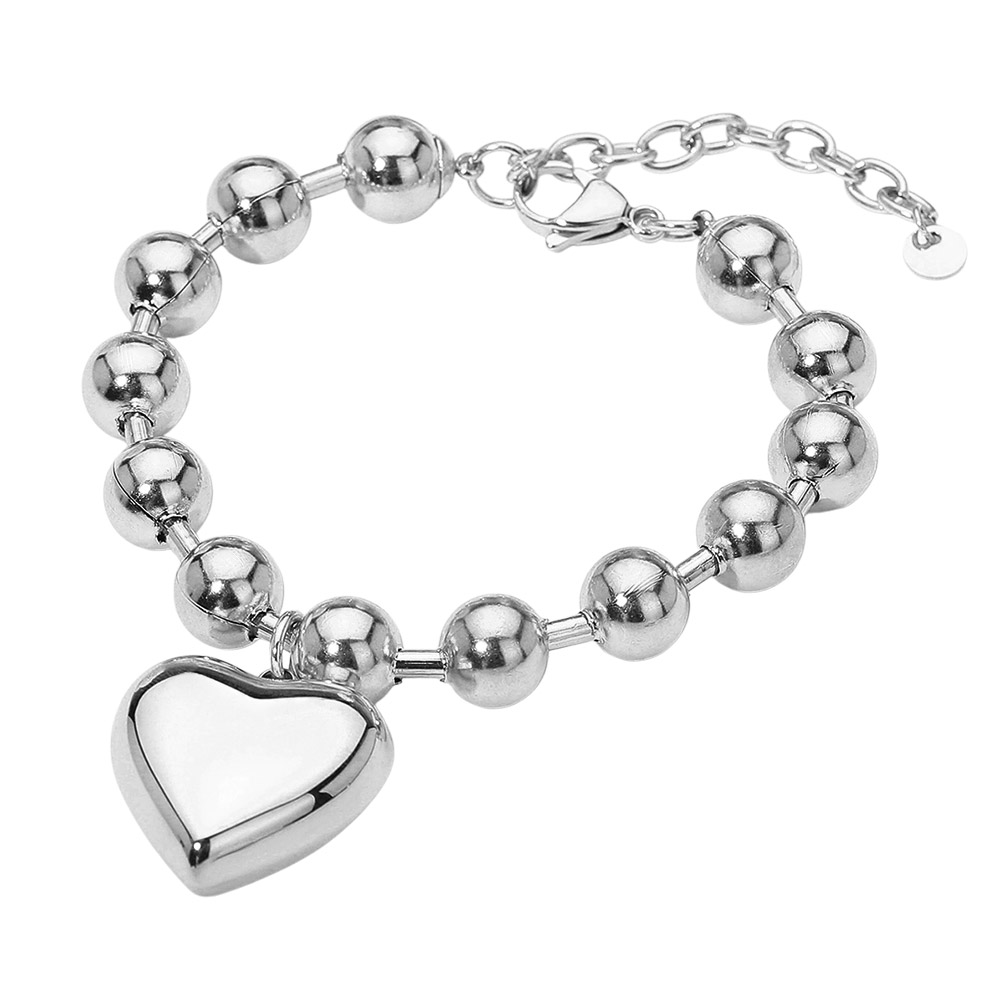 SECRET BOX_Stainless Steel Puffy Heart Charm Beaded Chain Bracelet