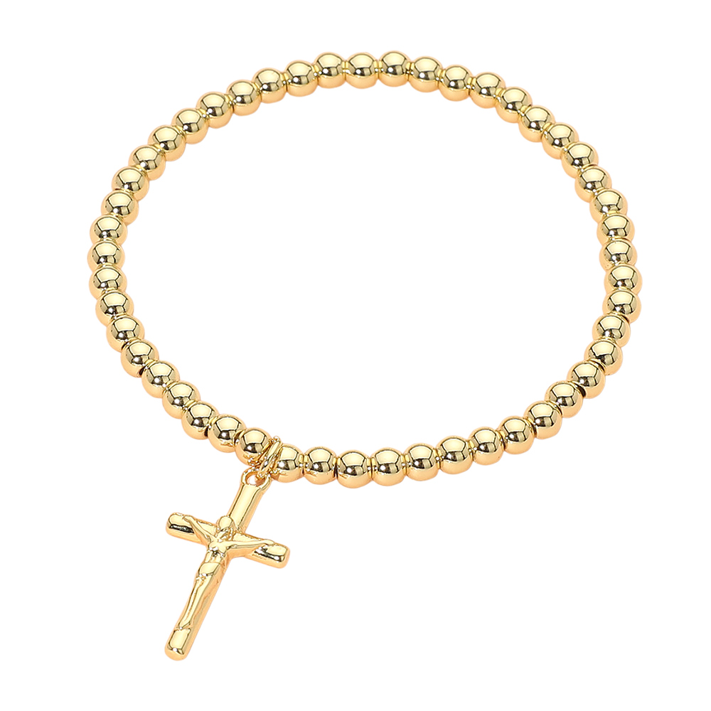 Details • Size : 0.1" H • Charm Size : 0.5" X 0.8" • Stretchable • This cross charm beaded stretch bracelet features a classic cross charm paired with smooth round beads for a clean, meaningful look. Designed with a comfortable stretch fit, it’s ideal for everyday wear, layering, faith-inspired gifting, boutique collections, and customers seeking timeless symbolic jewelry. • Stainless Steel