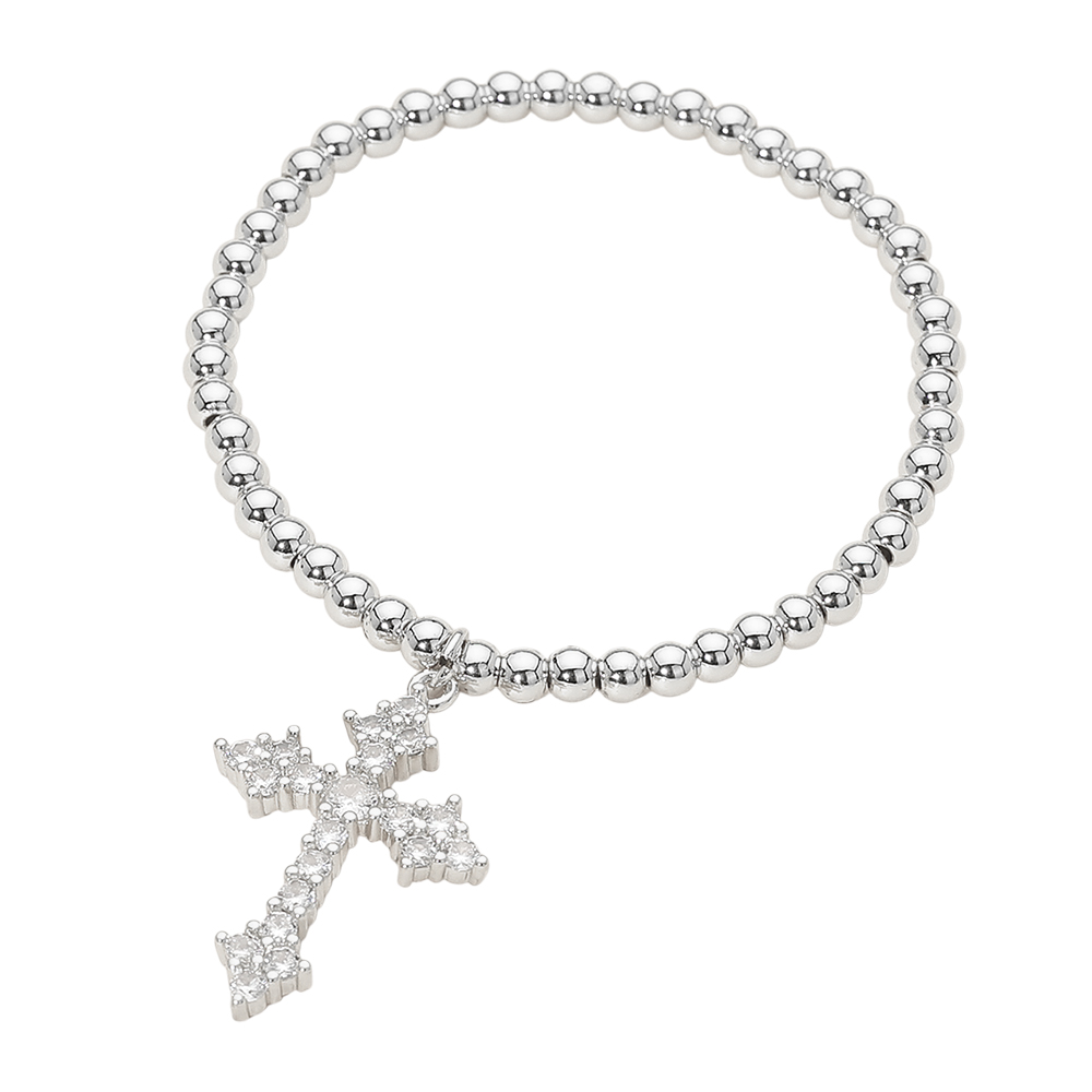 • This cross charm beaded stretch bracelet features a classic faith-inspired charm paired with smooth round beads for a clean, elegant look. Designed with a comfortable stretch fit for easy wear, it’s ideal for everyday styling, meaningful gifting, church events, and boutique accessory collections.