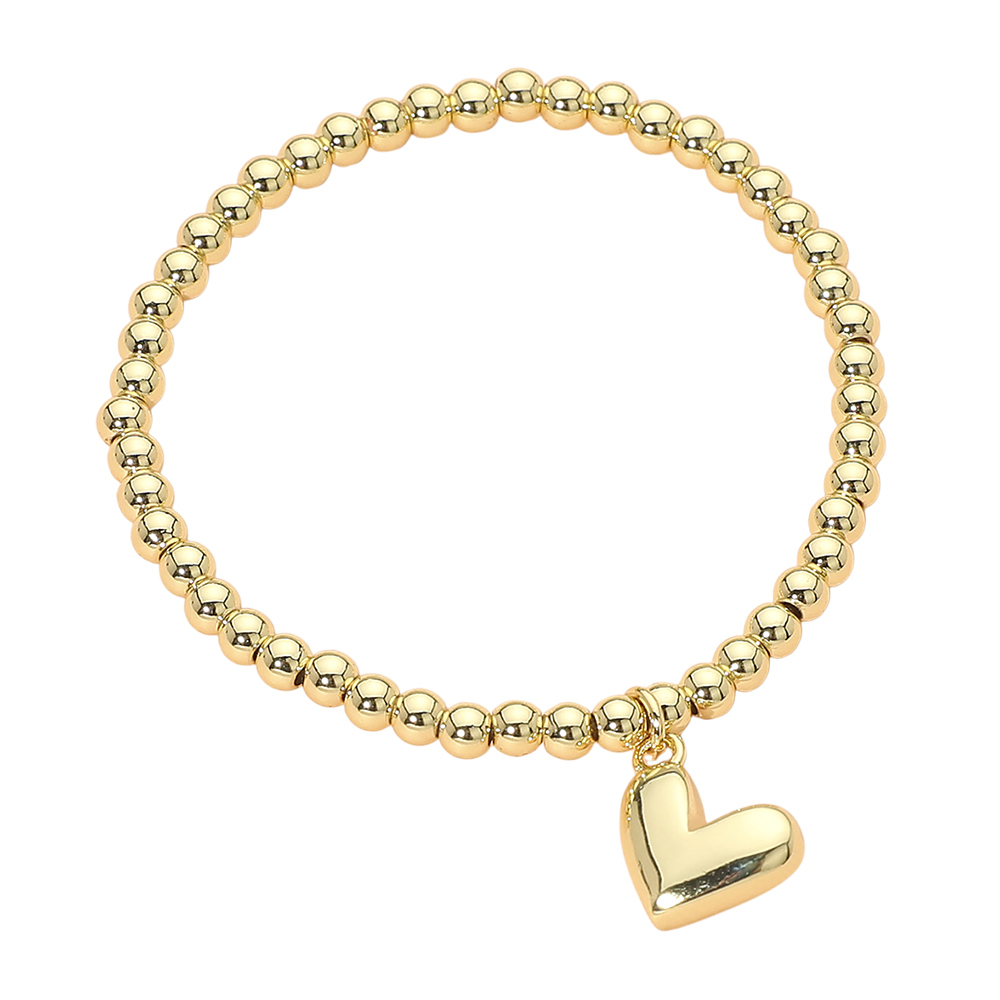 Details • Size : 0.1" H • Charm Size : 0.5" X 0.6" • Stretchable • This heart charm beaded stretch bracelet features a smooth beaded design accented with a classic heart charm for a timeless, everyday look. Designed with a flexible stretch fit, it’s perfect for stacking, gifting, and boutique collections, appealing to customers who love simple, meaningful jewelry. • Stainless Steel