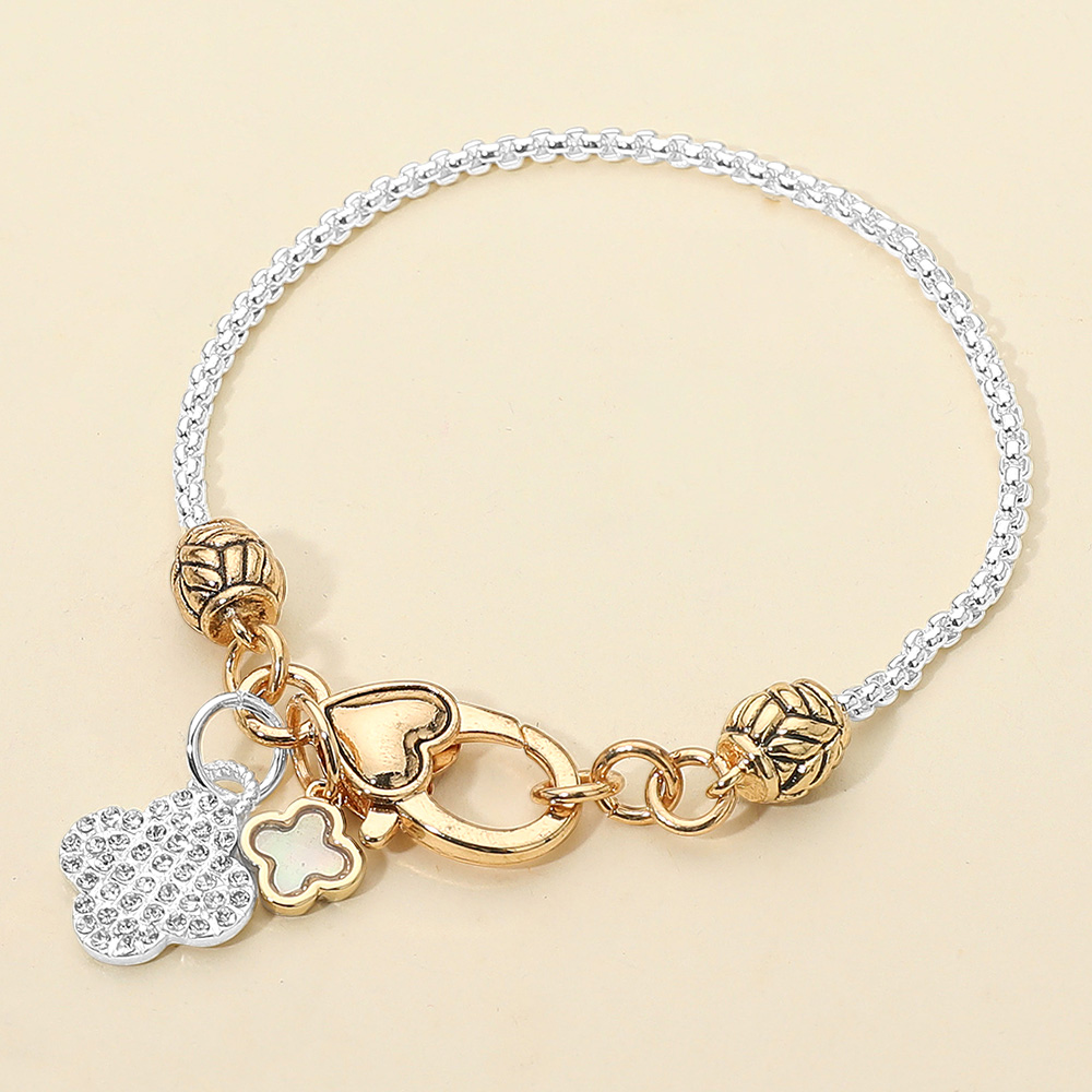 Stone Paved Mother of Pearl Quatrefoil Charm Bracelet