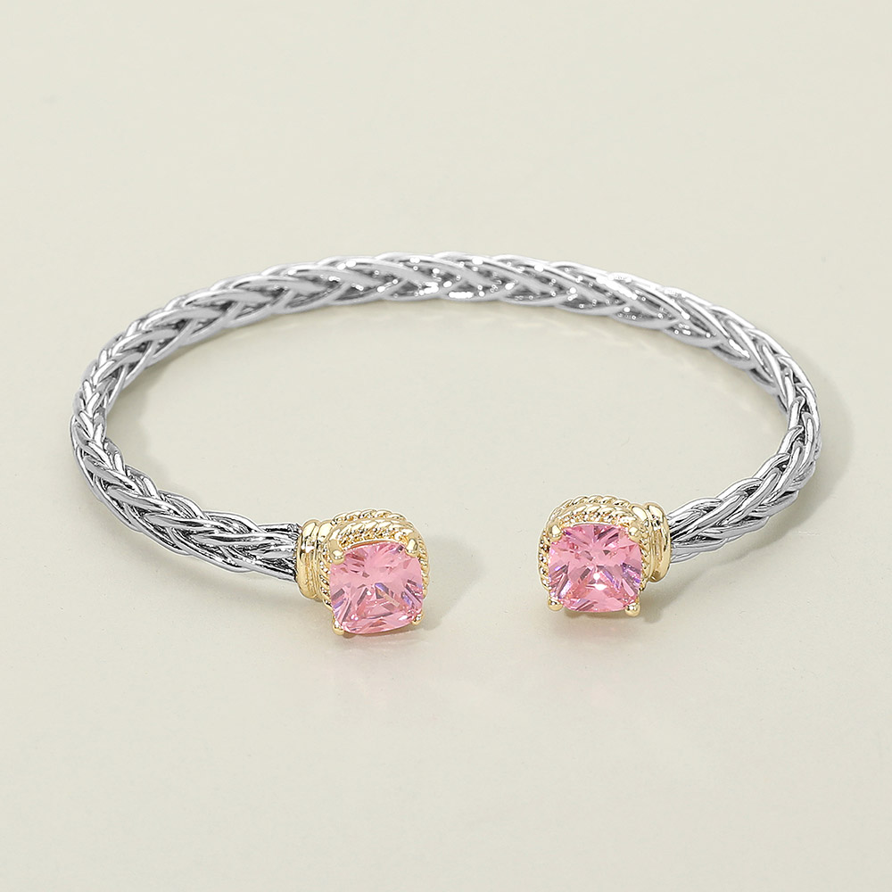 • Refined open cuff bracelet featuring a braided band and square crystal end details. Designed with a structured silhouette and elegant sparkle, this versatile accessory pairs effortlessly with casual or dress looks and layers beautifully with other bracelets for curated styling.