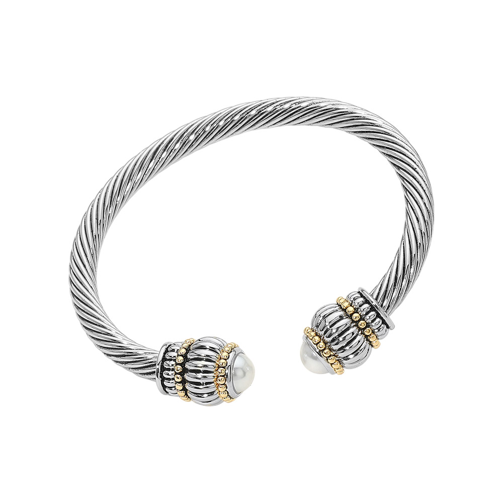 Boho Pearl Tip Twisted Cable Cuff Bracelet