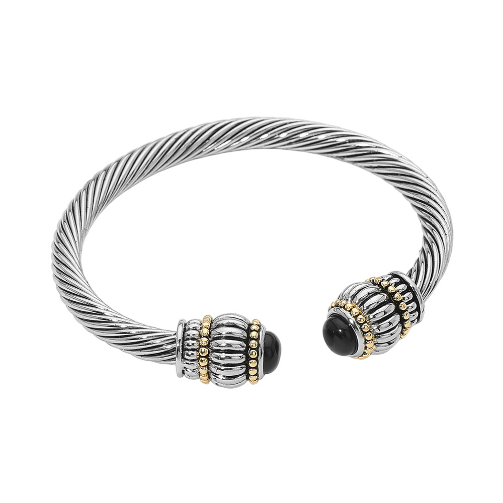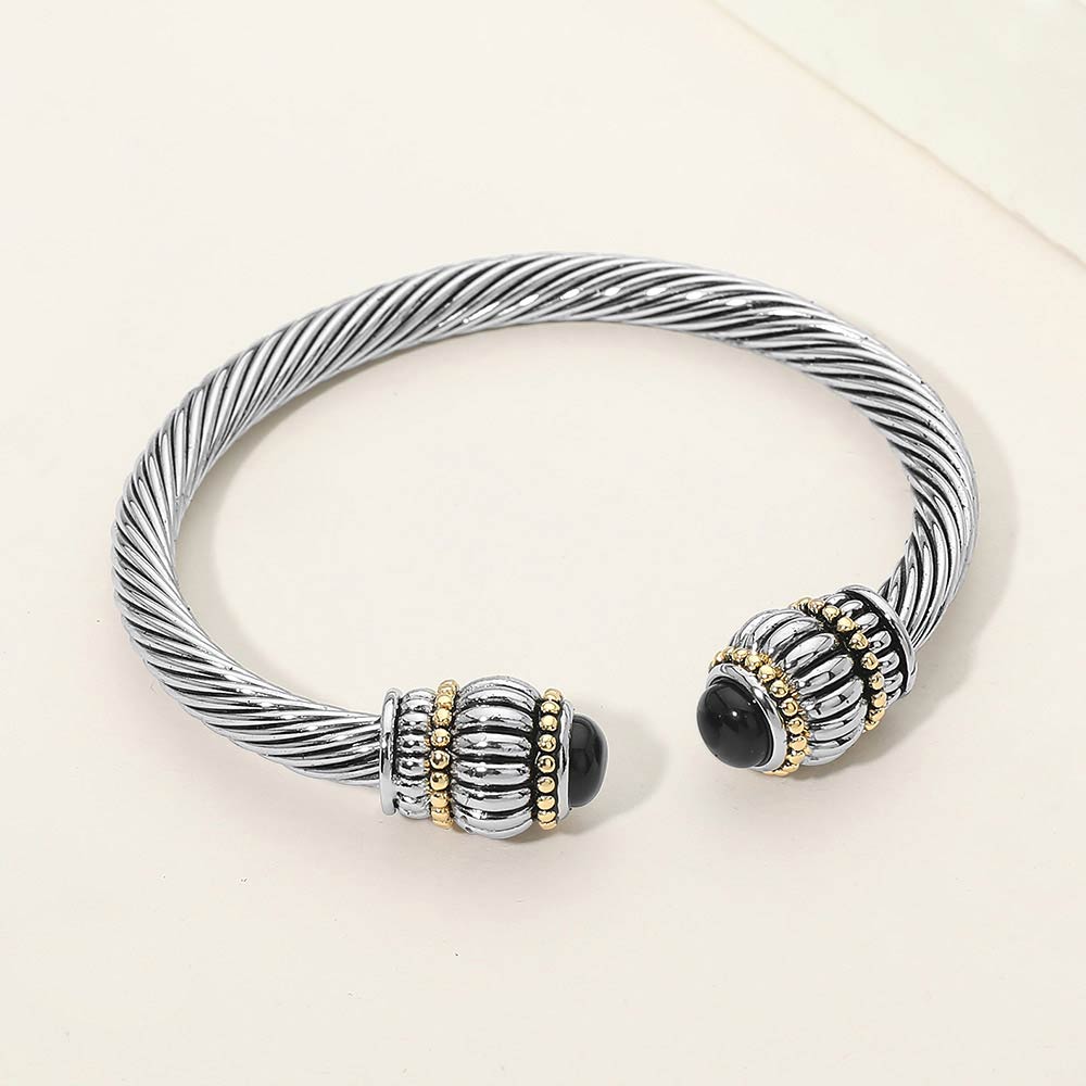 Boho Stone Tip Twisted Cable Cuff Bracelet