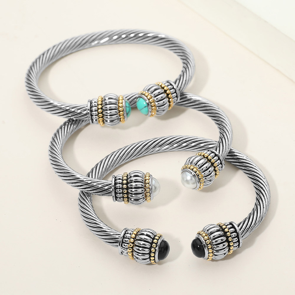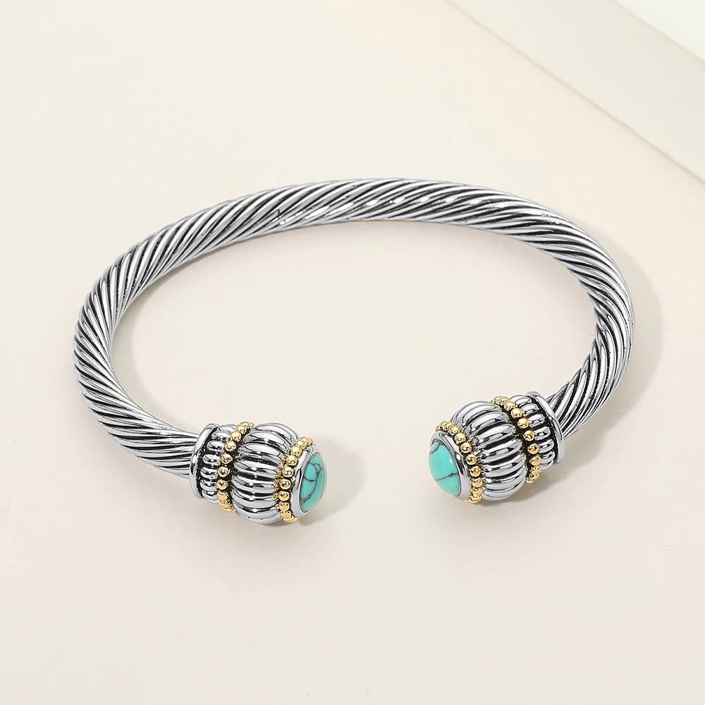 Details • Size : 0.5" H, 2.5"D • Cuff • Statement open cuff bracelet featuring a sculpted twisted cable design with refined rounded accent ends. Designed for easy slip-on wear, this bracelet delivers a bold yet timeless look ideal for everyday styling, gifting, or layering with other wrist pieces for elevated fashion appeal.