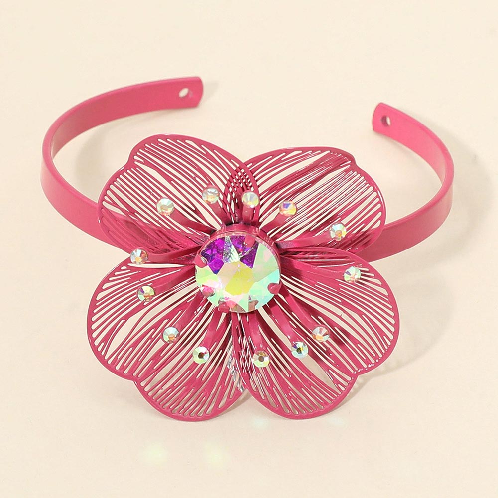 Details • Size : 1.5" H, 2.3" D • Cuff • Statement cuff bracelet featuring a bold floral design with a faceted center accent and delicate crystal details. Designed to stand out with sculptural petals and eye-catching shine, this cuff adds artistic flair and elegant impact to everyday outfits or special occasion styling. • Lead and Nickel Compliant