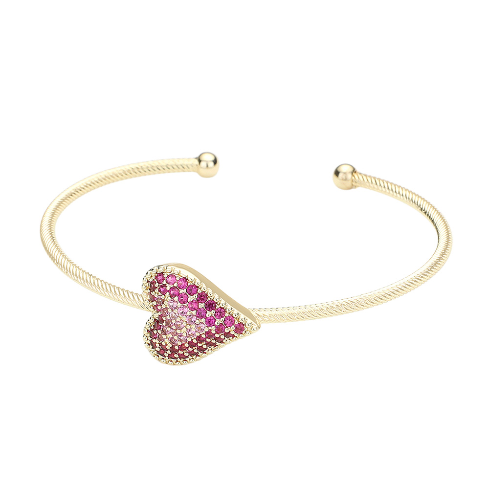CZ Stone Paved Heart Pointed Cuff Bracelet