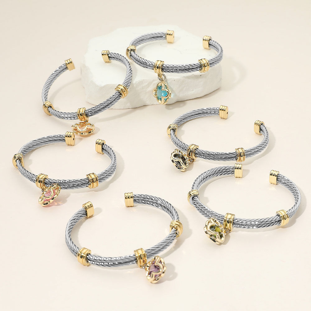 CZ Stone Quatrefoil Charm Dangle Cuff Bracelet CZ Stone Quatrefoil Charm Dangle Cuff Bracelet CZ Stone Quatrefoil Charm Dangle Cuff Bracelet