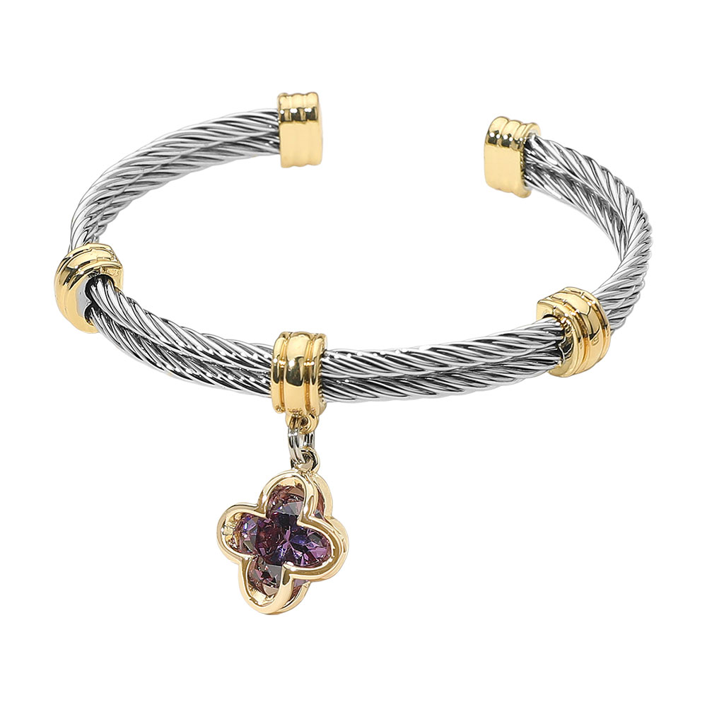 CZ Stone Quatrefoil Charm Dangle Cuff Bracelet