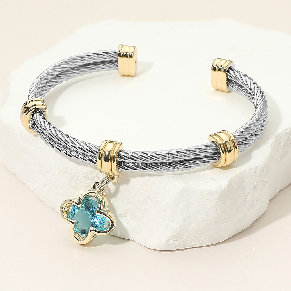 CZ Stone Quatrefoil Charm Dangle Cuff Bracelet CZ Stone Quatrefoil Charm Dangle Cuff Bracelet CZ Stone Quatrefoil Charm Dangle Cuff Bracelet