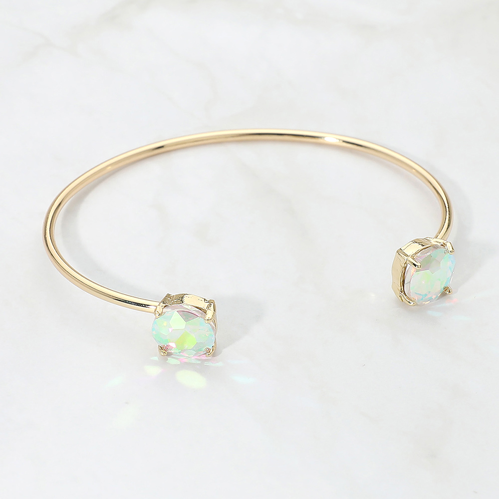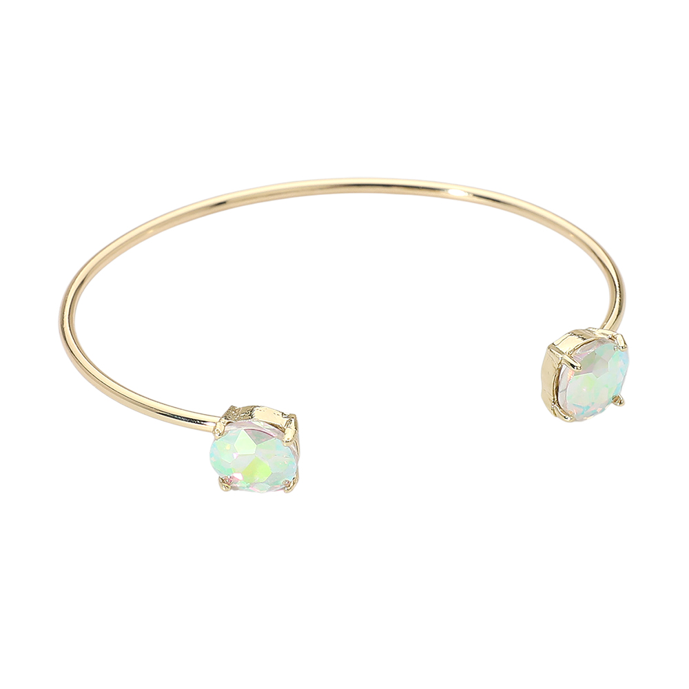 • This double stone open cuff bracelet features a sleek minimalist silhouette accented with two faceted stones for subtle sparkle. Designed for easy slip-on wear, it offers a modern, refined look that works for everyday styling or special occasions, making it a versatile choice for boutique jewelry collections and gift-ready displays.