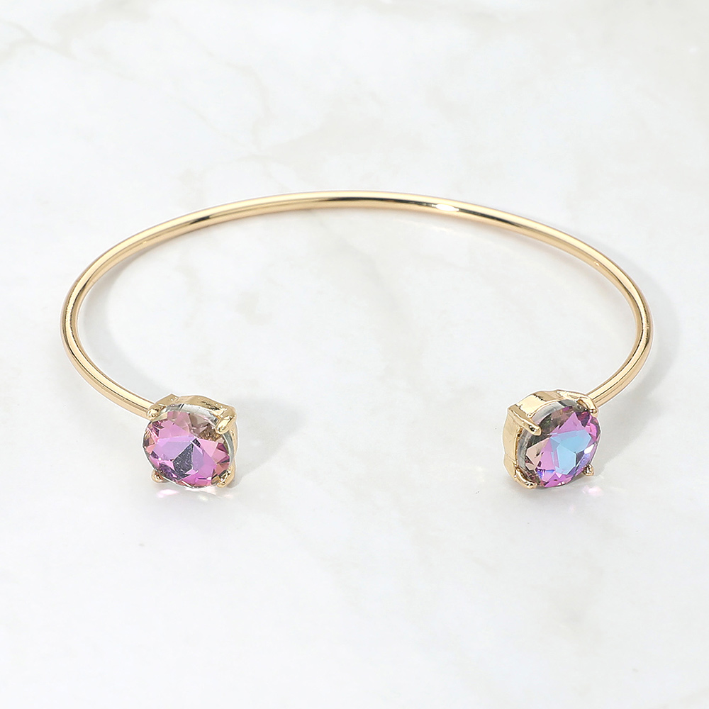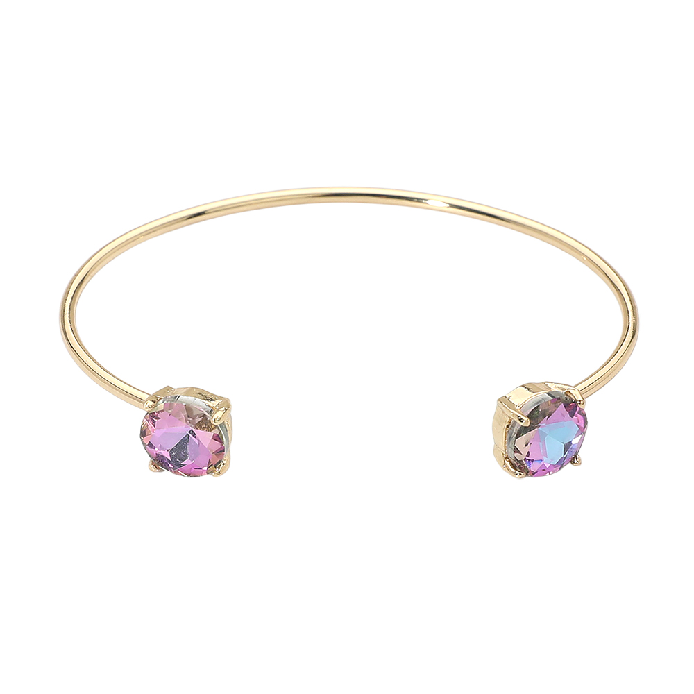 Details • Size : 0.4" H, 2.5" D • Cuff • This double stone open cuff bracelet features a sleek minimalist silhouette accented with two faceted stones for subtle sparkle. Designed for easy slip-on wear, it offers a modern, refined look that works for everyday styling or special occasions, making it a versatile choice for boutique jewelry collections and gift-ready displays. • Lead and Nickel Compliant
